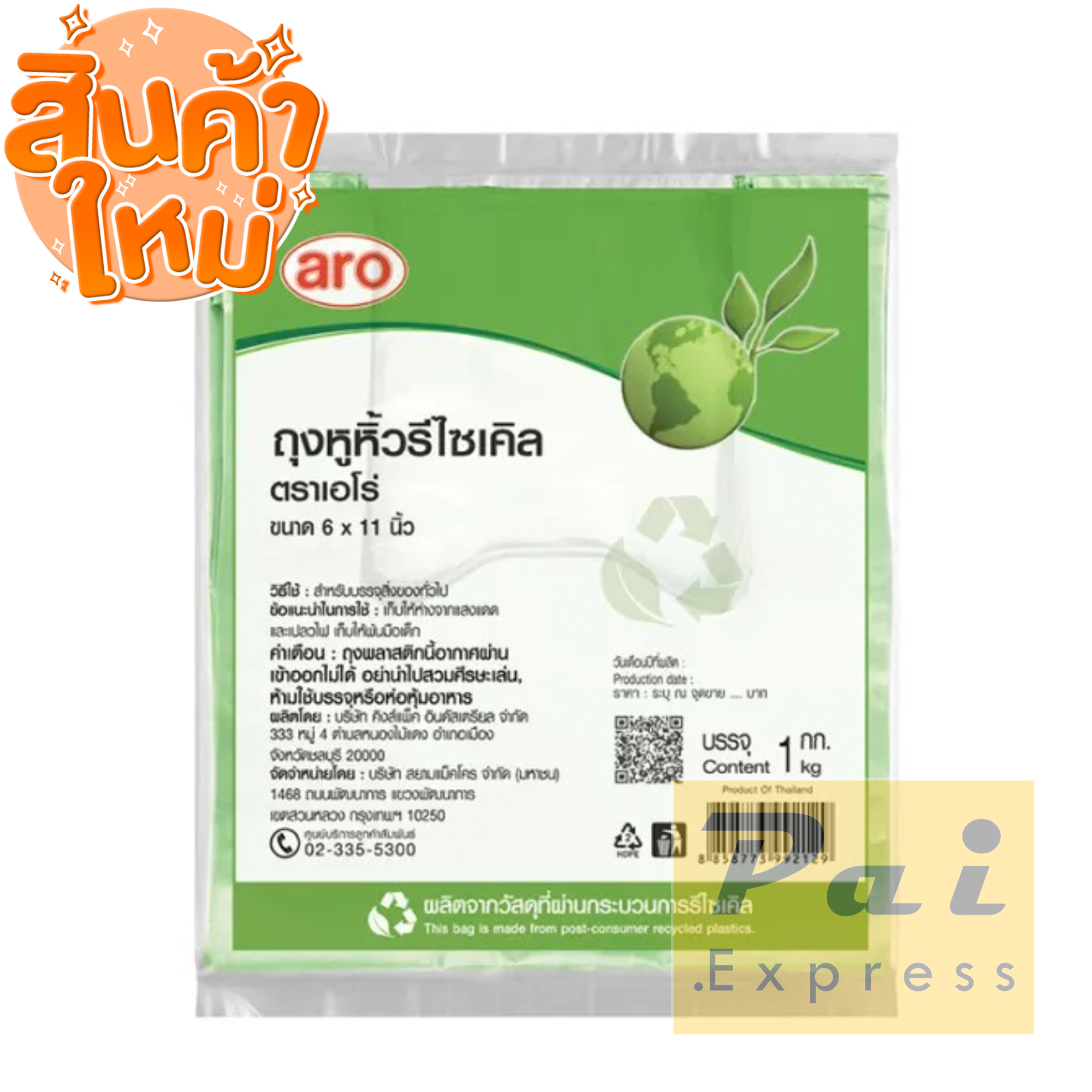 จำนวน ถุงหูหิ้วรีไซเคิล ตราเอโร่ 6x11 ชิ้น